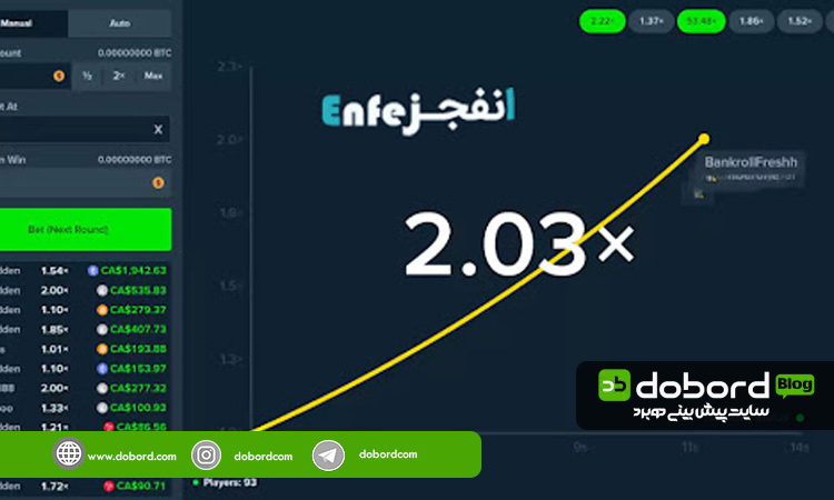 بررسی تاریخچه ضرایب می تواند به شما در اخذ تصمیم گیری های بهتر کمک کند. در سمت راست صفحه نمودار و ضرایب بازی قابل مشاهده هستند. این نمودار تغییرات ضرایب بازی را در بازه های زمانی مختلف نشان می دهد و می تواند در شناسایی الگوها و روندهای ضریب بازی به شما کمک شایانی کند.